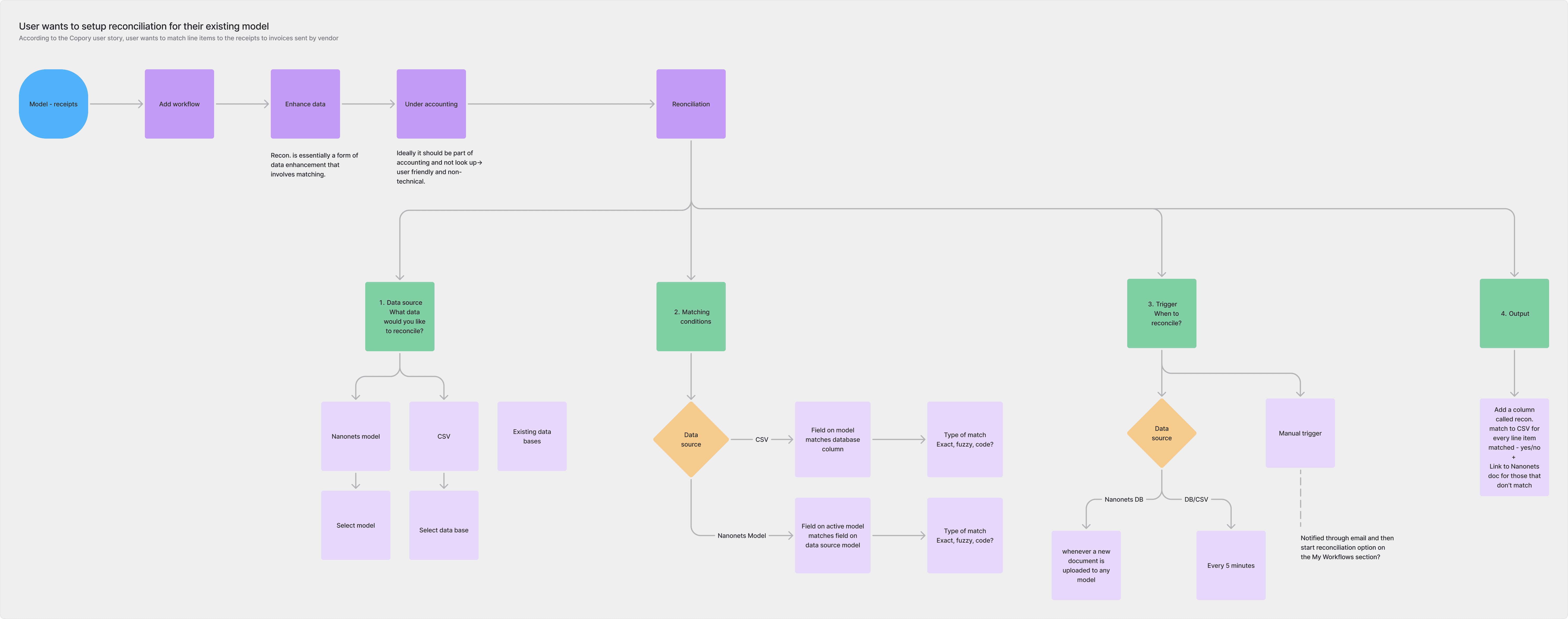 By mapping out the user flow, we established a solid foundation for the reconciliation feature. This process allowed us to visualize the user journey, organize the information architecture, anticipate potential edge cases, and ensure alignment with stakeholders from the get-go.